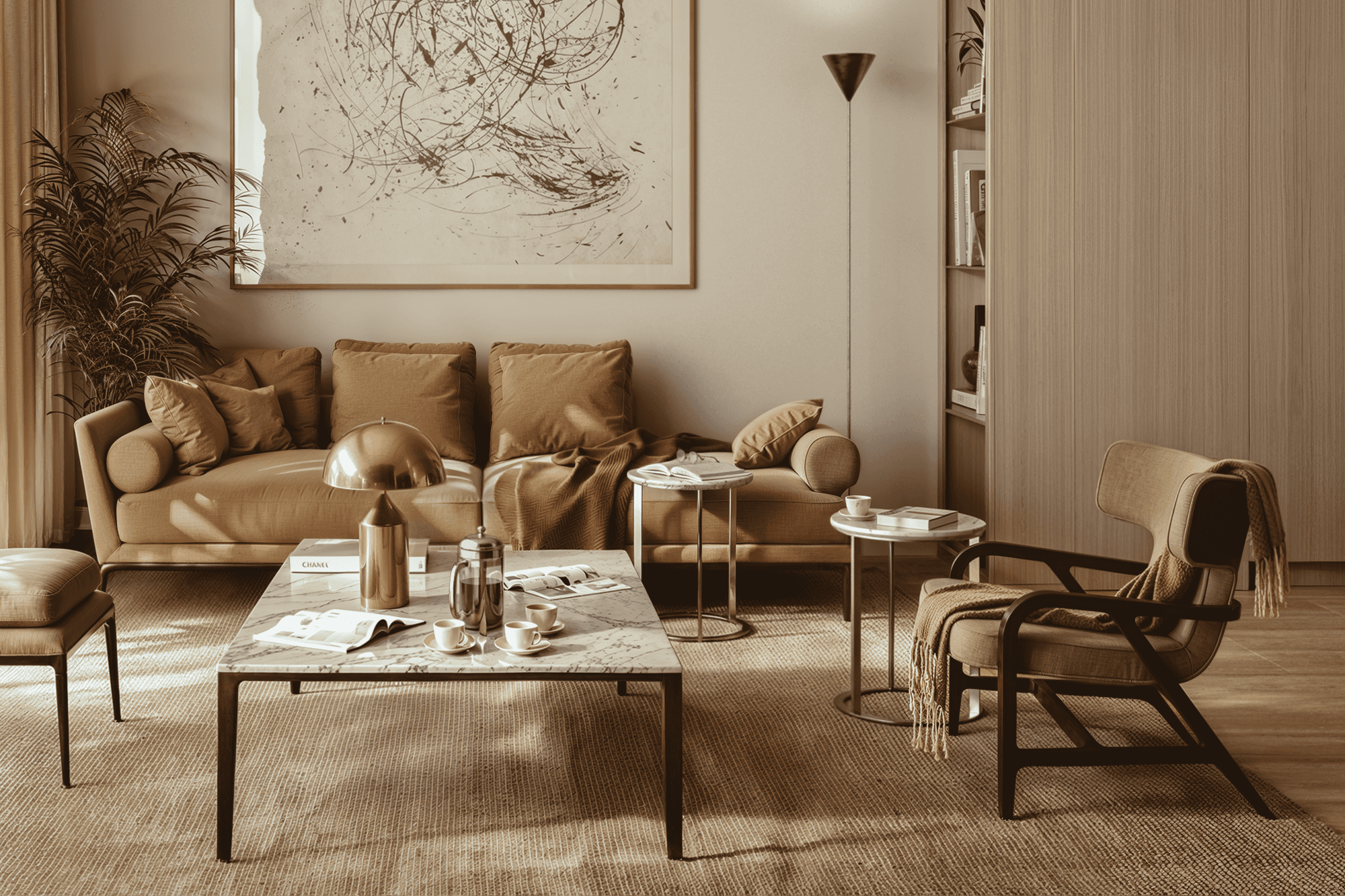 Before the weaving of materials begins, we evaluate the space as a pure volume. This 'Monochrome Study' allows us to calibrate the behavior of light without distraction, ensuring the softness of the shadows and the hierarchy of the forms are architecturally sound.